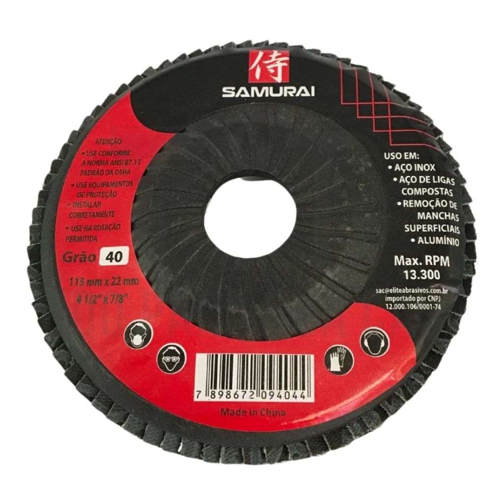 O Disco Flap Samurai Grão 40 foi desenvolvido para operações de desbaste e acabamento em metais. Indicado para profissionais que buscam eficiência e qualidade no desbaste de superfícies metálicas, ele é ideal para aplicações em aço inox, aço de ligas compostas, alumínio e na remoção de manchas superficiais.