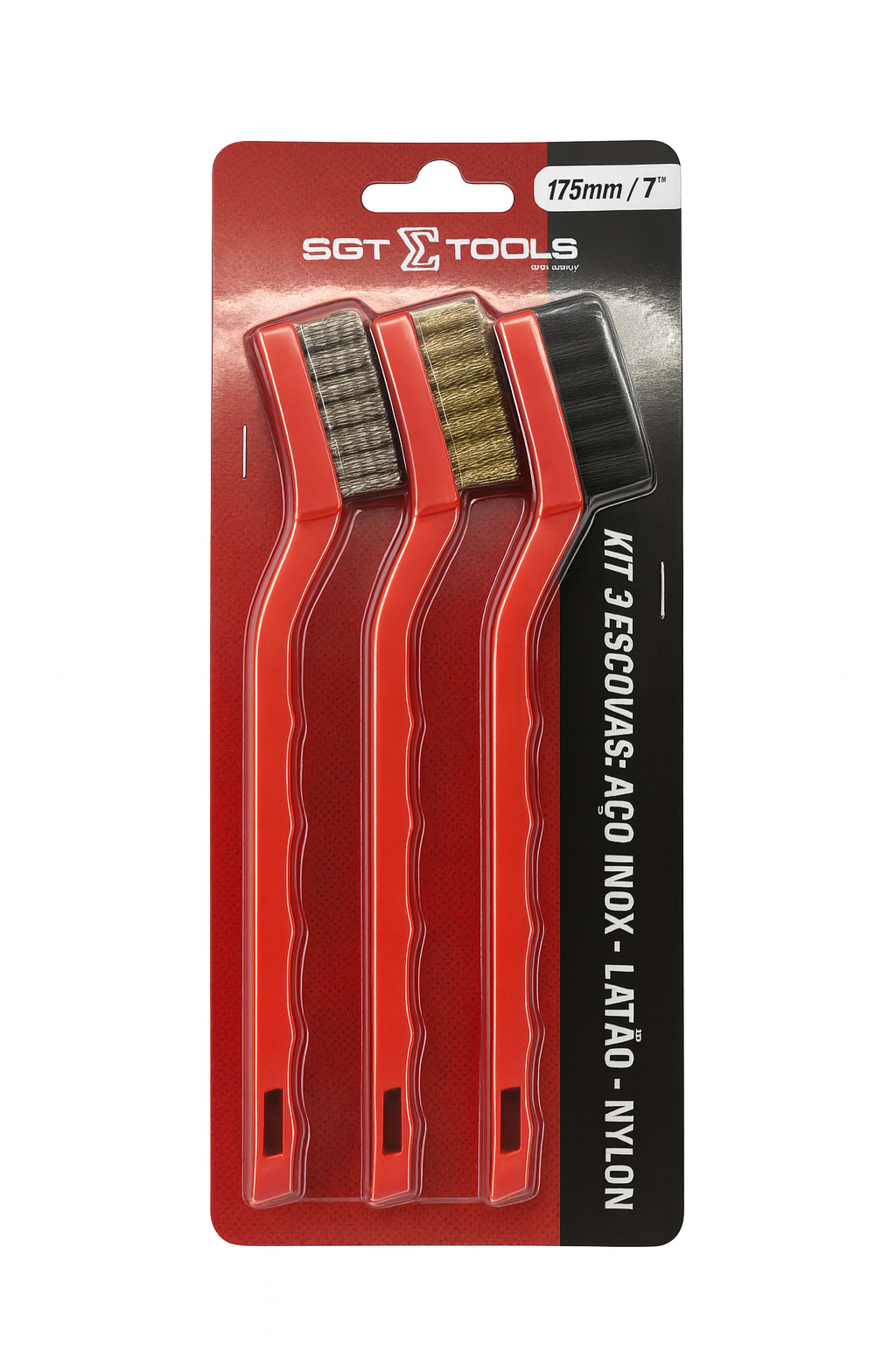 Kit de escovas desenvolvido para cuidados com o carro, moto, casa, oficina e uso em limpeza de peças em geral. Possui design ergonômico e de fácil manuseio.