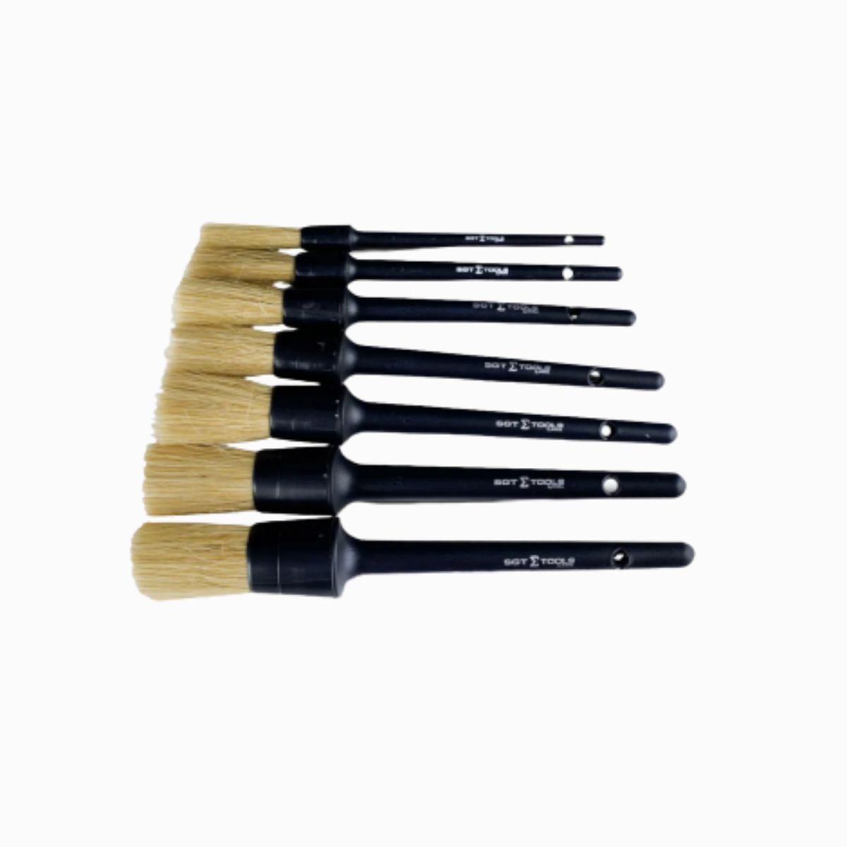 O Kit de Pincéis de Detalhamento SGT com 7 unidades de cerdas naturais é a escolha ideal para profissionais que exigem excelência na limpeza automotiva. Desenvolvidos para alcançar os pontos mais difíceis com precisão, esses pincéis entregam maciez, durabilidade e controle, sendo perfeitos para superfícies sensíveis, tanto internas quanto externas.